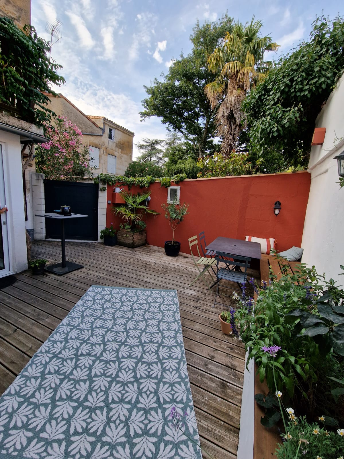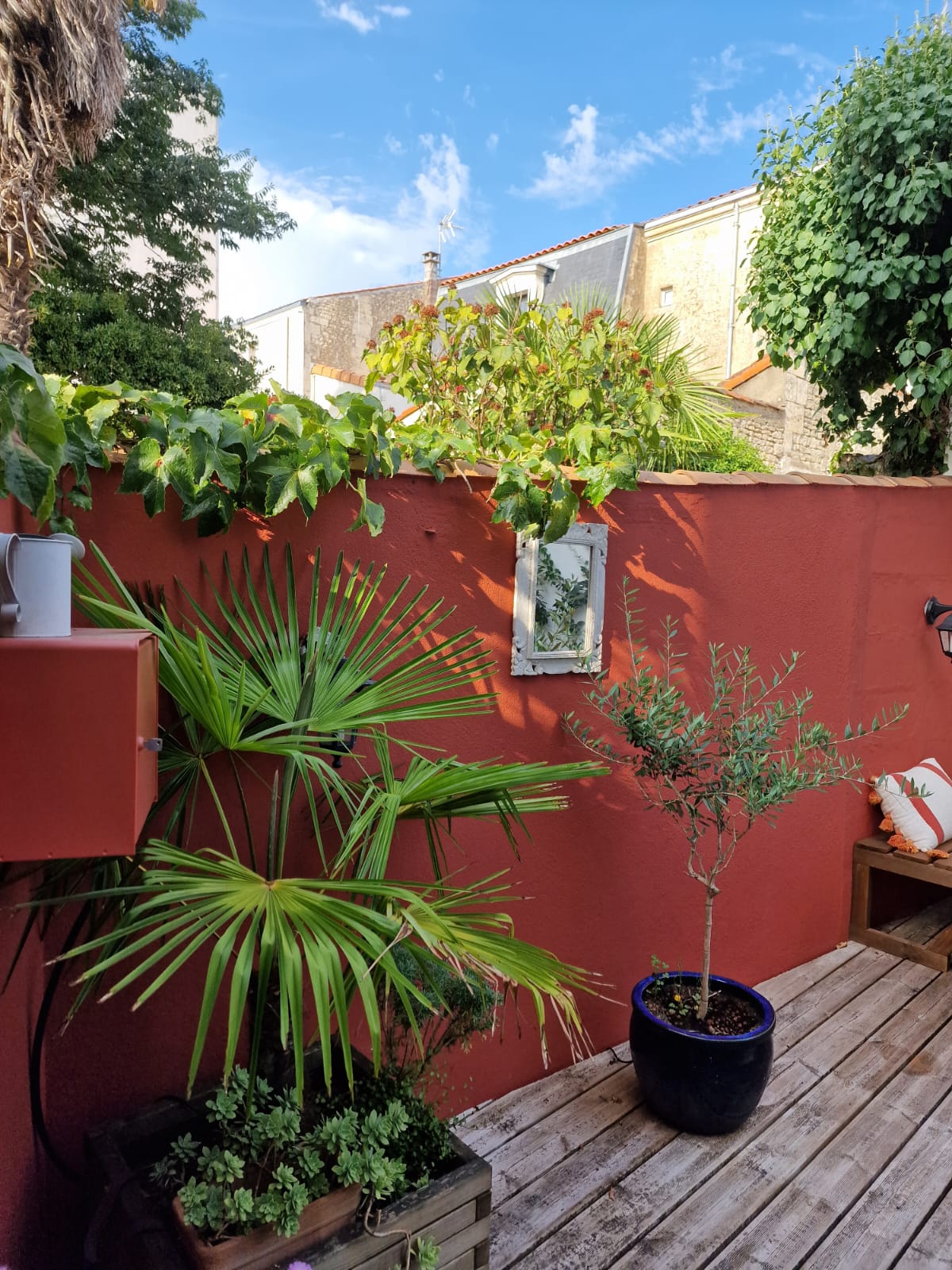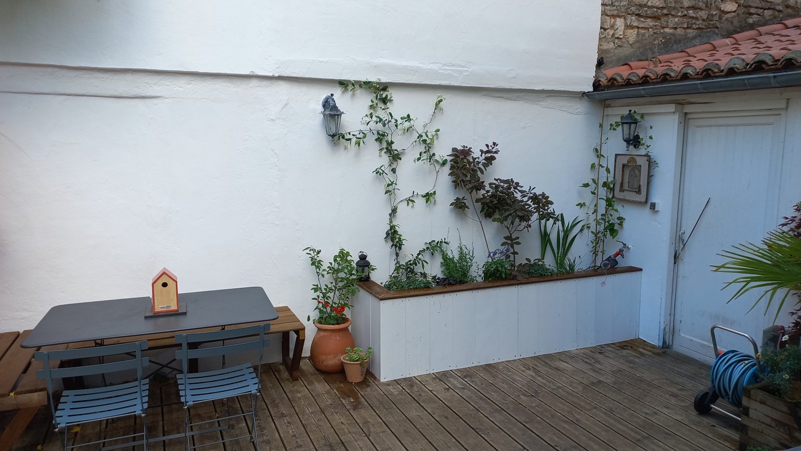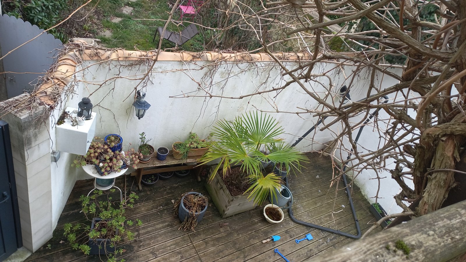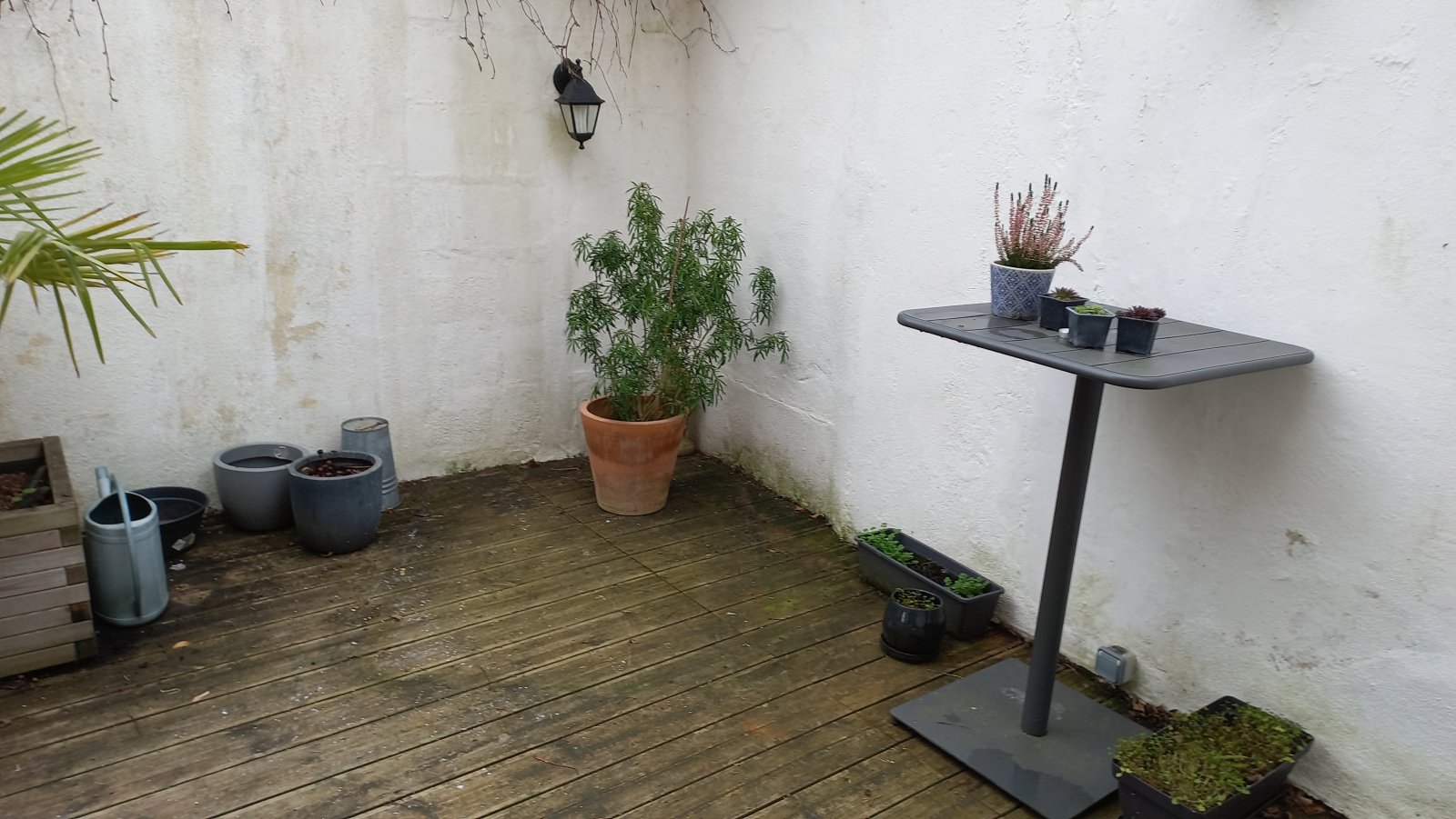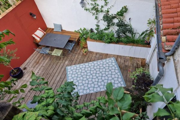 Cette cour en plein centre ville, orientée nord, en était réduite à la fonction de couloir pour entrer dans la maison. La circulation est prioritaire dans l’aménagement de cet espace mais la famille profite désormais d’autres atouts : une belle vue depuis le salon, d’un espace détente autour de la table et du banc sur mesure, toujours de la place pour les enfants et la magie des lumières le soir... Il ne reste aux plantes nouvellement installées qu’à s’épanouir pour renforcer la sensation d’être au jardin !